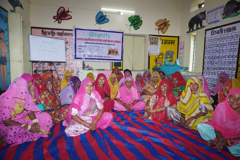 Signify and Shrushti collaborated on the "Har Gaon Roshan & Ratri Choupal Project" to install 185 solar lights in 15 rural villages of Mavli Block and Kotra Block of Udaipur. This initiative has notably benefited women by enhancing nighttime safety and enabling children to study under better lighting conditions. The projects aim is to address challenges faced by rural women, including limited access to credit, healthcare, and education, exacerbated by global crises and climate change. By promoting social participation and economic empowerment, the project aligns with multiple SDGs, including No Poverty, Zero Hunger, Gender Equality, and Climate Action.